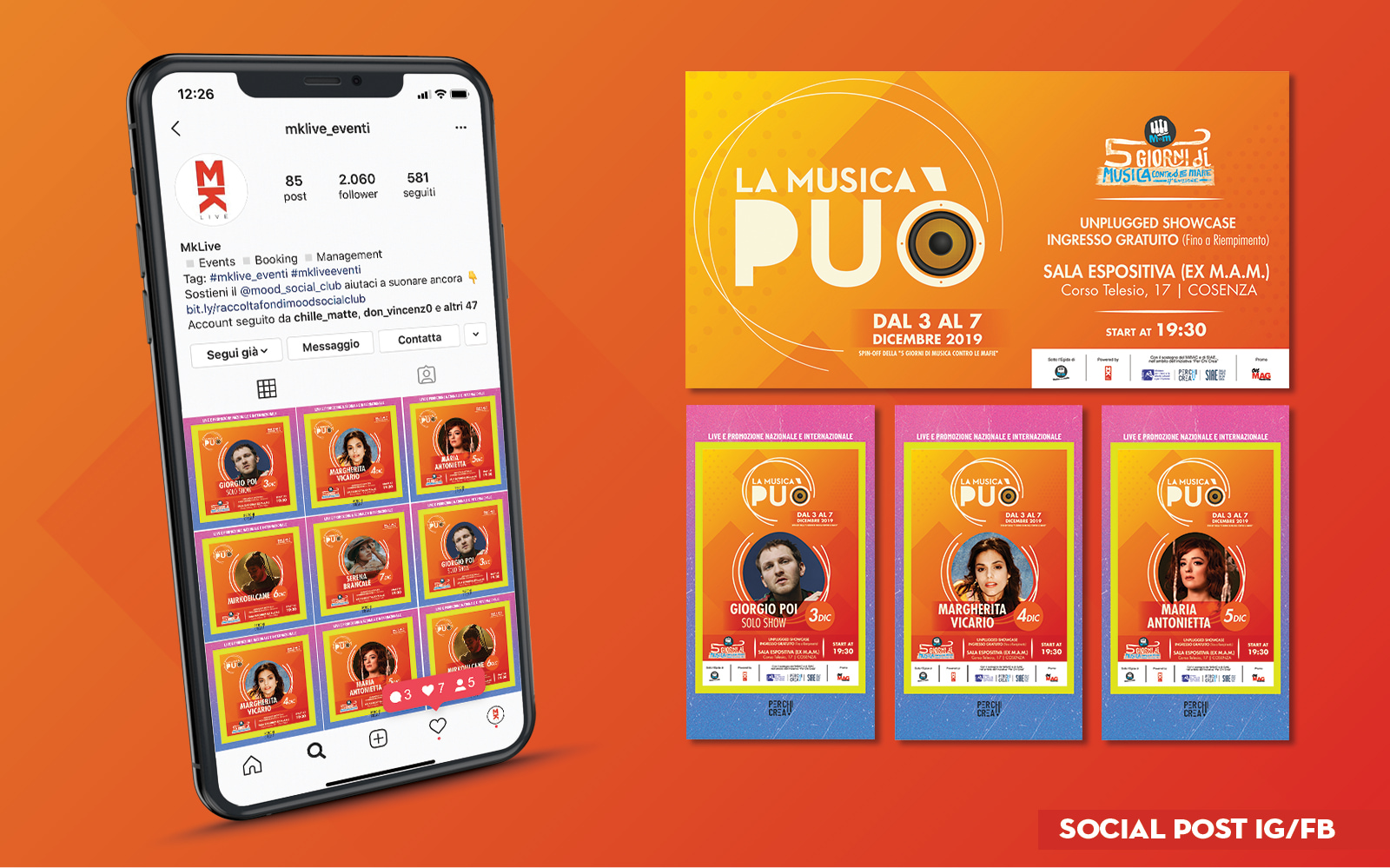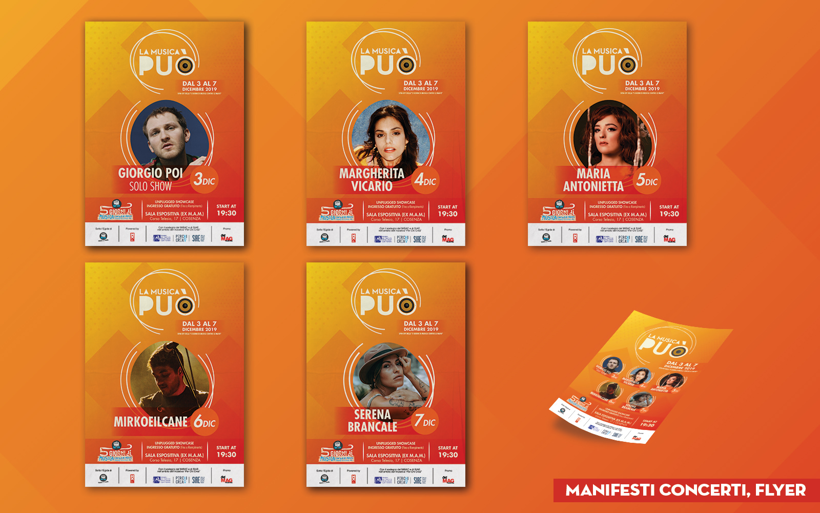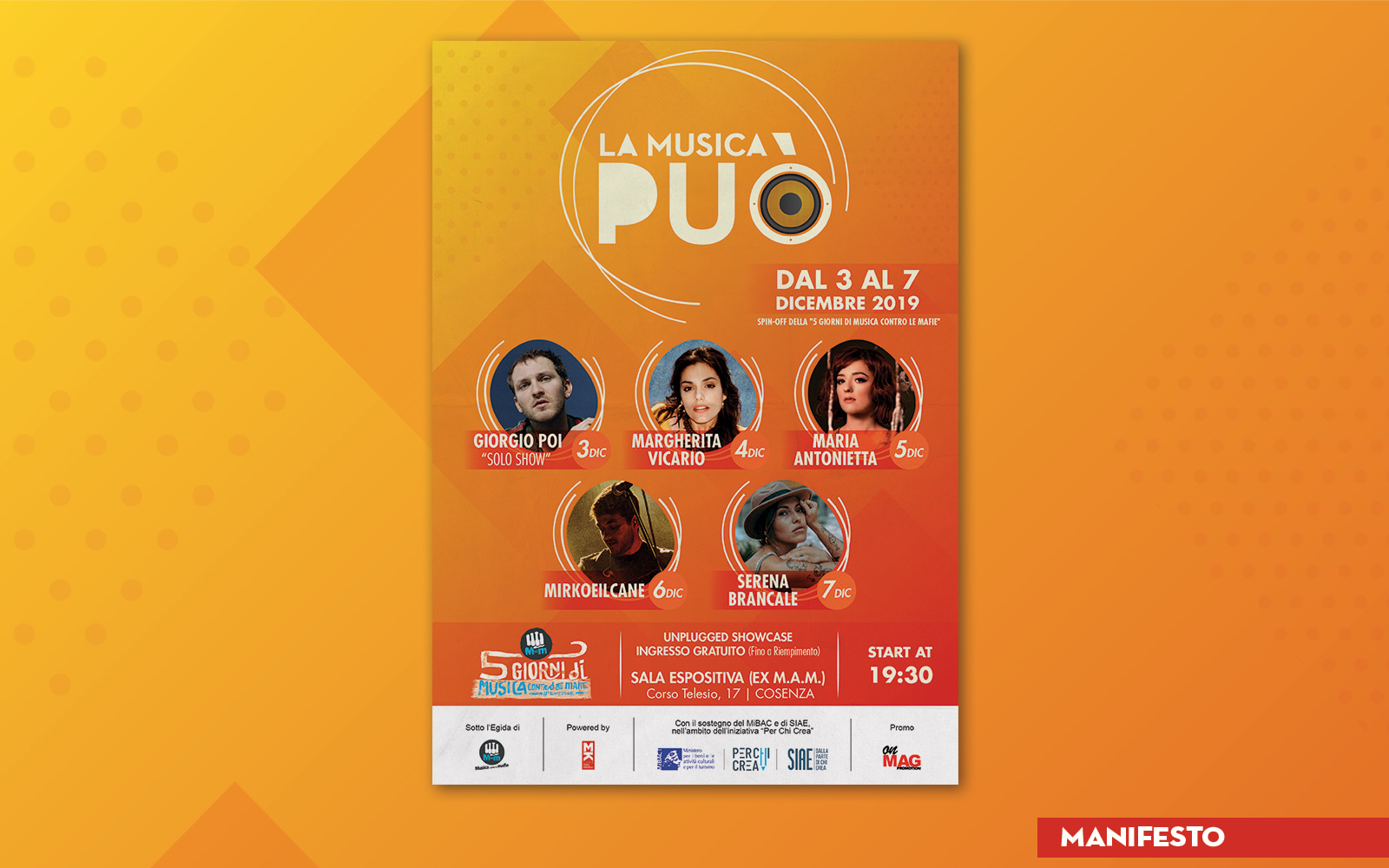 LA MUSICA PUÒ Year: 2019 Grafica generale, dei concerti e dei post social dello spin-off della “5 Giorni di musica contro le mafie”.